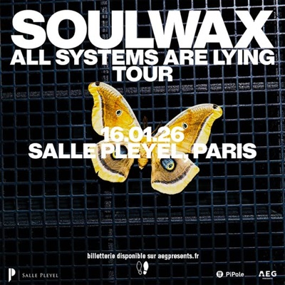 « Leur nouvel album, All Systems Are Lying, sortira le 17 octobre 2025, avant un retour très attendu sur scène à la Salle Pleyel le 16 janvier 2026 ! Soulwax, groupe belge mené par les frères David et Stephen Dewaele (aussi connus sous le nom de 2ManyDJs), révolutionne la scène électronique et rock depuis les années 90. Après avoir marqué plusieurs générations avec des albums culte comme Much Against Everyone’s Advice, Nite Versions ou encore leurs mashups visionnaires, le quatuor n’a cessé de repousser les frontières entre rock, électro et culture club. Collaborateurs de Justice, LCD Soundsystem ou Tiga, ils se sont forgé une réputation mondiale grâce à leurs lives survoltés et leurs productions audacieuses. »