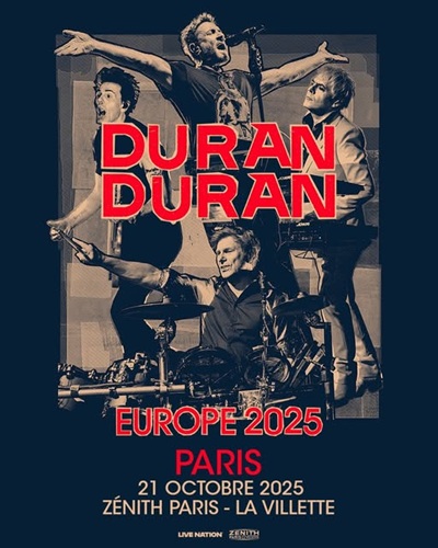 « Icône absolue de la pop-rock mondiale, le légendaire groupe britannique Duran Duran revient pour un concert unique et électrisant. Rendez-vous le 21 octobre au Zénith Paris – La Villette. »
